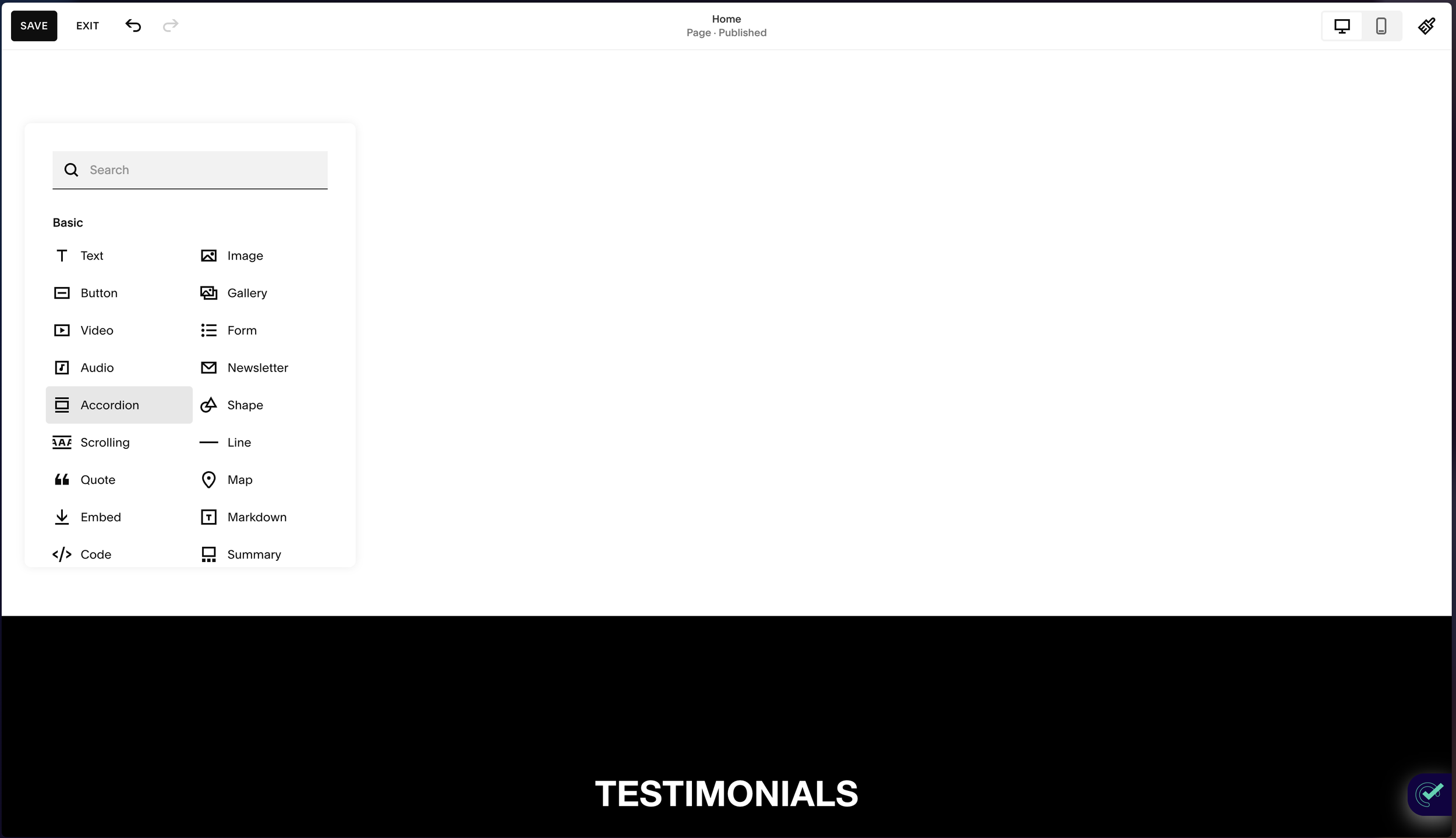 Go to “Edit” and scroll to the section you want to add the accordion block to, if you’re adding a new section you can add a blank section. You can find this as you add a new section to the page.